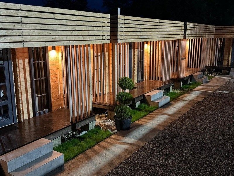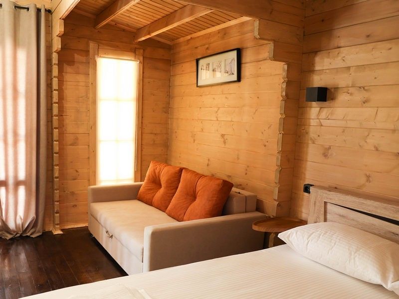 Комплекс предлагает гостям приватный отдых в домиках класса люкс, изолированных друг от друга. Эко-домики с дизайнерской отделкой с собственной ванной комнатой, необходимой мебелью: двуспальной кроватью и удобным диваном, который при желании может быть использован как дополнительное место, а также современной техникой: телевизором со Smart TV, сплит-системой, холодильником, электрическим чайником. В каждом номере есть своя терраса с мебелью.